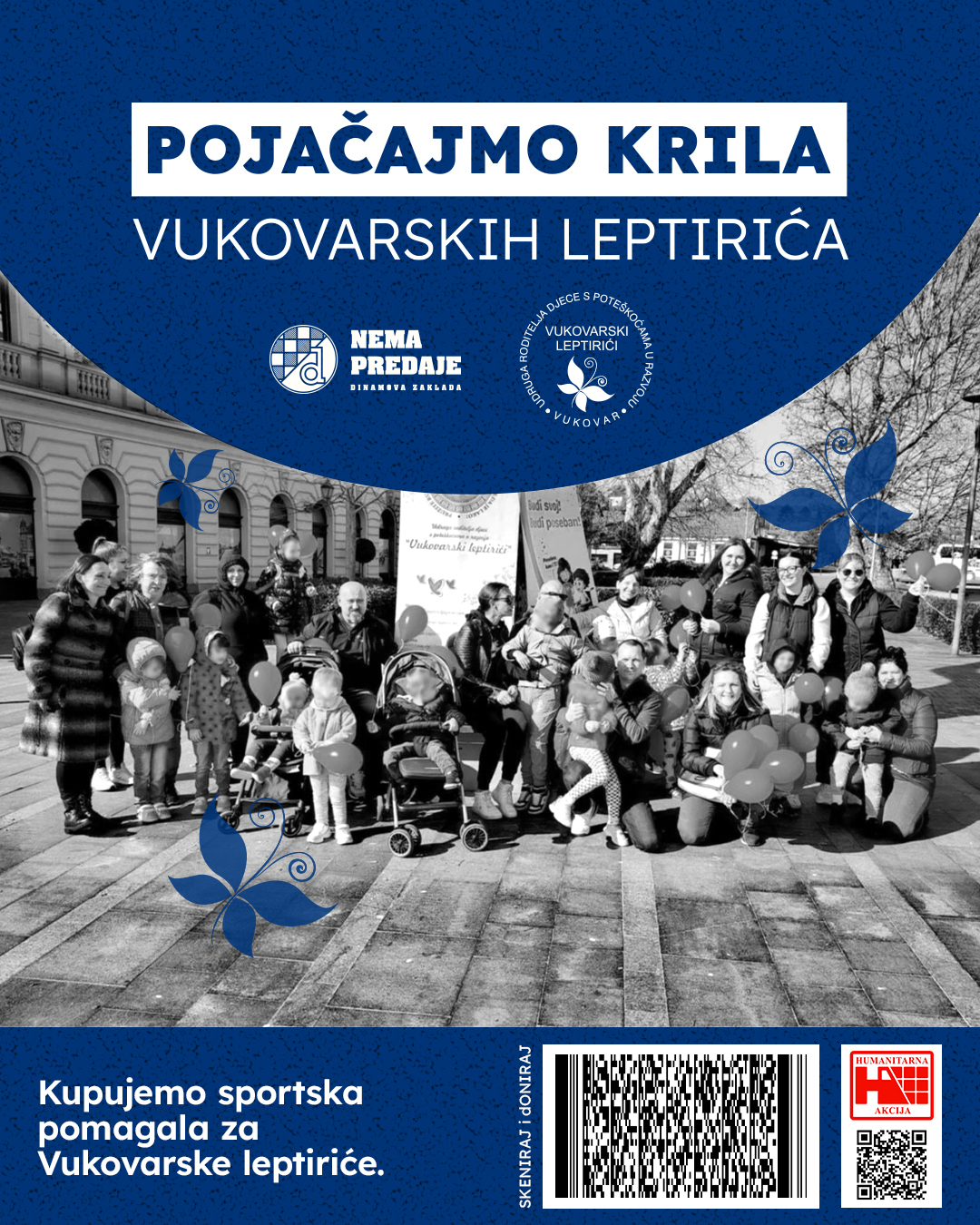 Humanitarna akcija “Pojačajmo krila Vukovarskih leptirića” službeno je upisana u Evidenciju humanitarnih akcija pod oznakom GZG-HA/NODP-25-35, što jamči potpunu transparentnost i zakonitost provedbe. Humanitarna akcija traje do 31. siječnja 2026. godine.