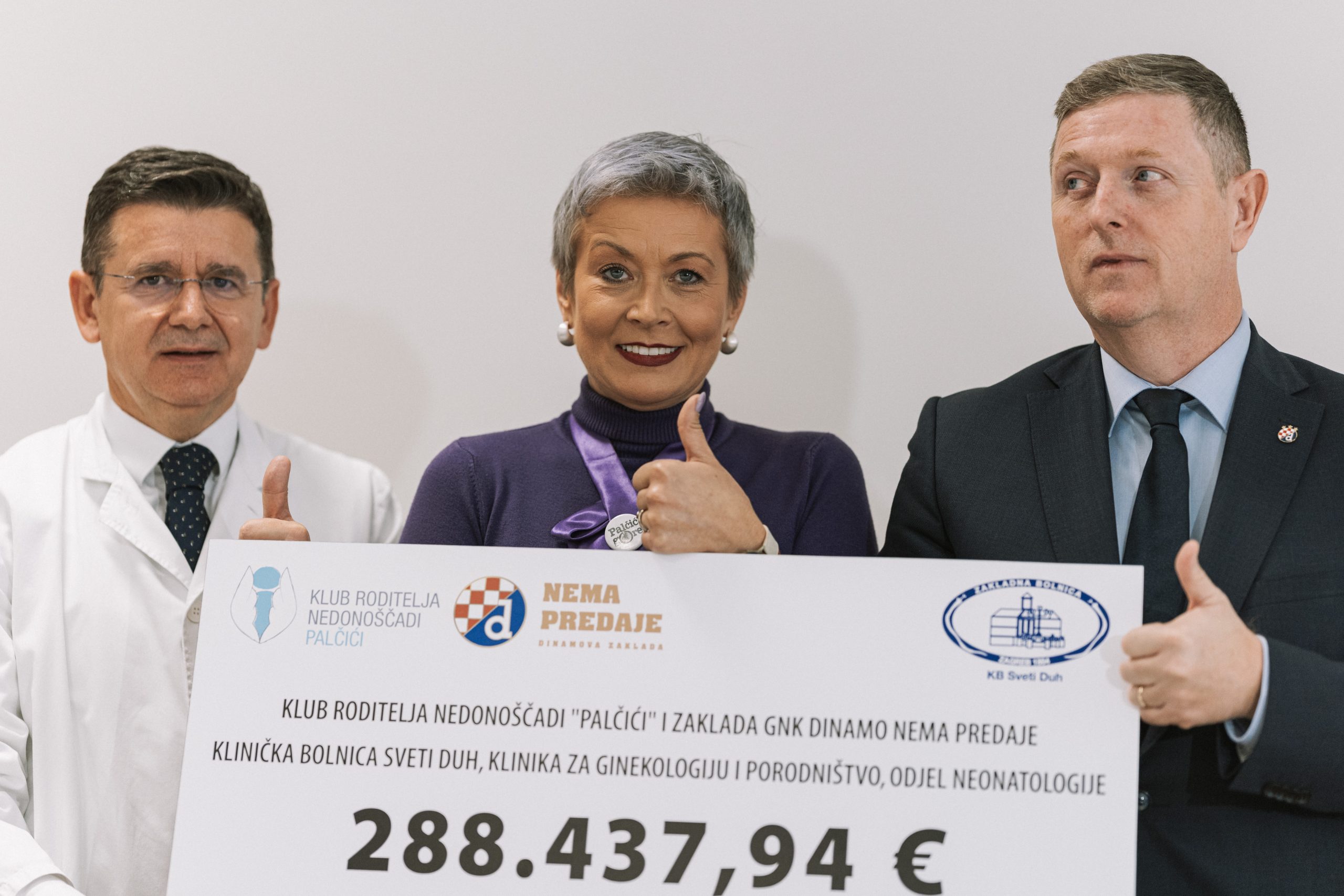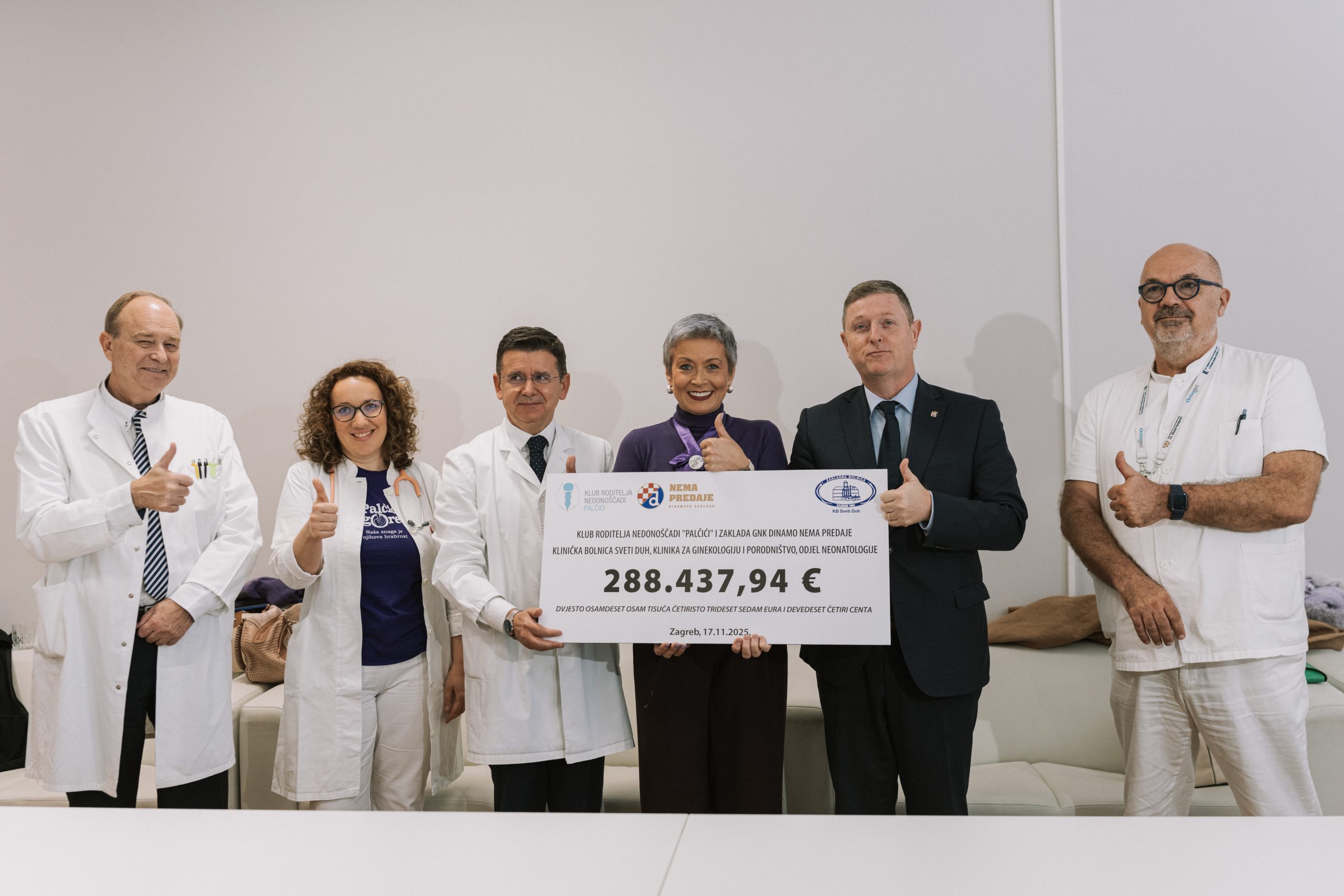 U ponedjeljak, na svjetski dan Svjesnosti o prijevremenom rođenju, Klinička bolnica „Sveti Duh“ primila je vrijednu donaciju medicinske opreme u ukupnom iznosu od 288.437,94 eura, koju su tijekom tri mjeseca humanitarne akcije zajednički prikupili Klub roditelja nedonoščadi „Palčići“ i Dinamova zaklada Nema predaje.