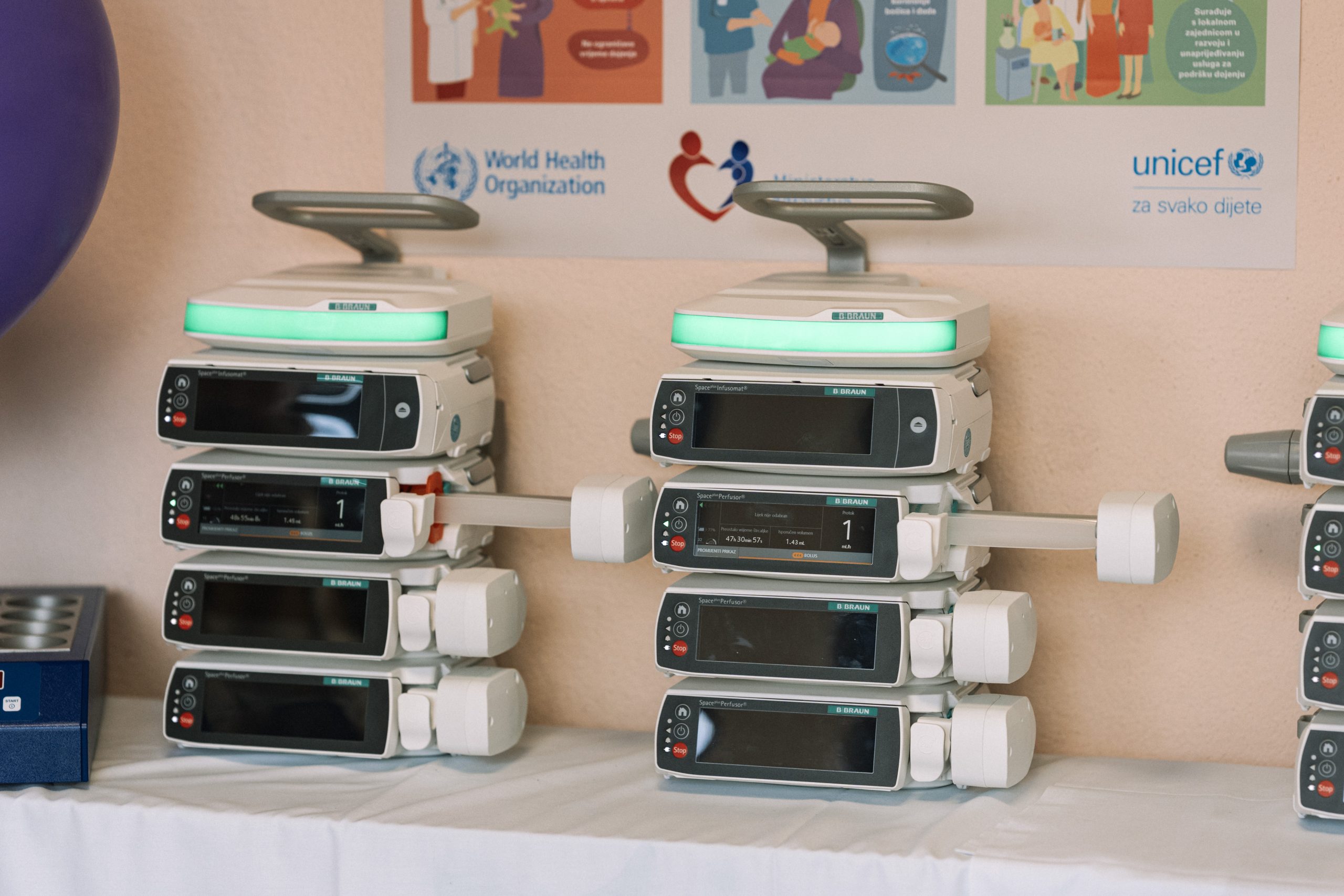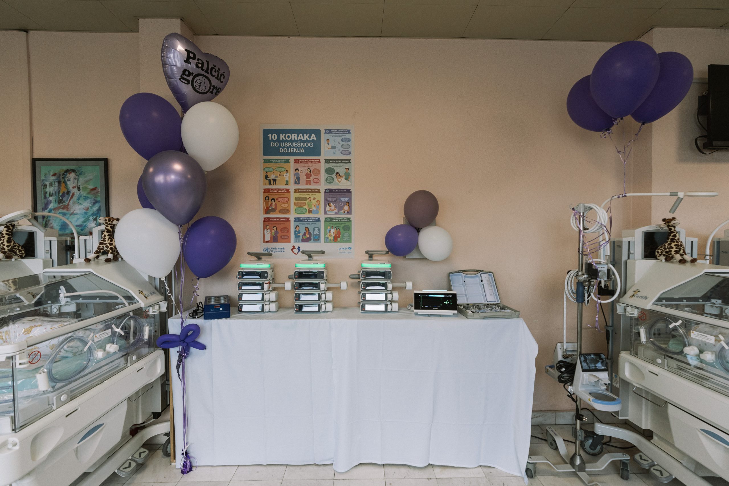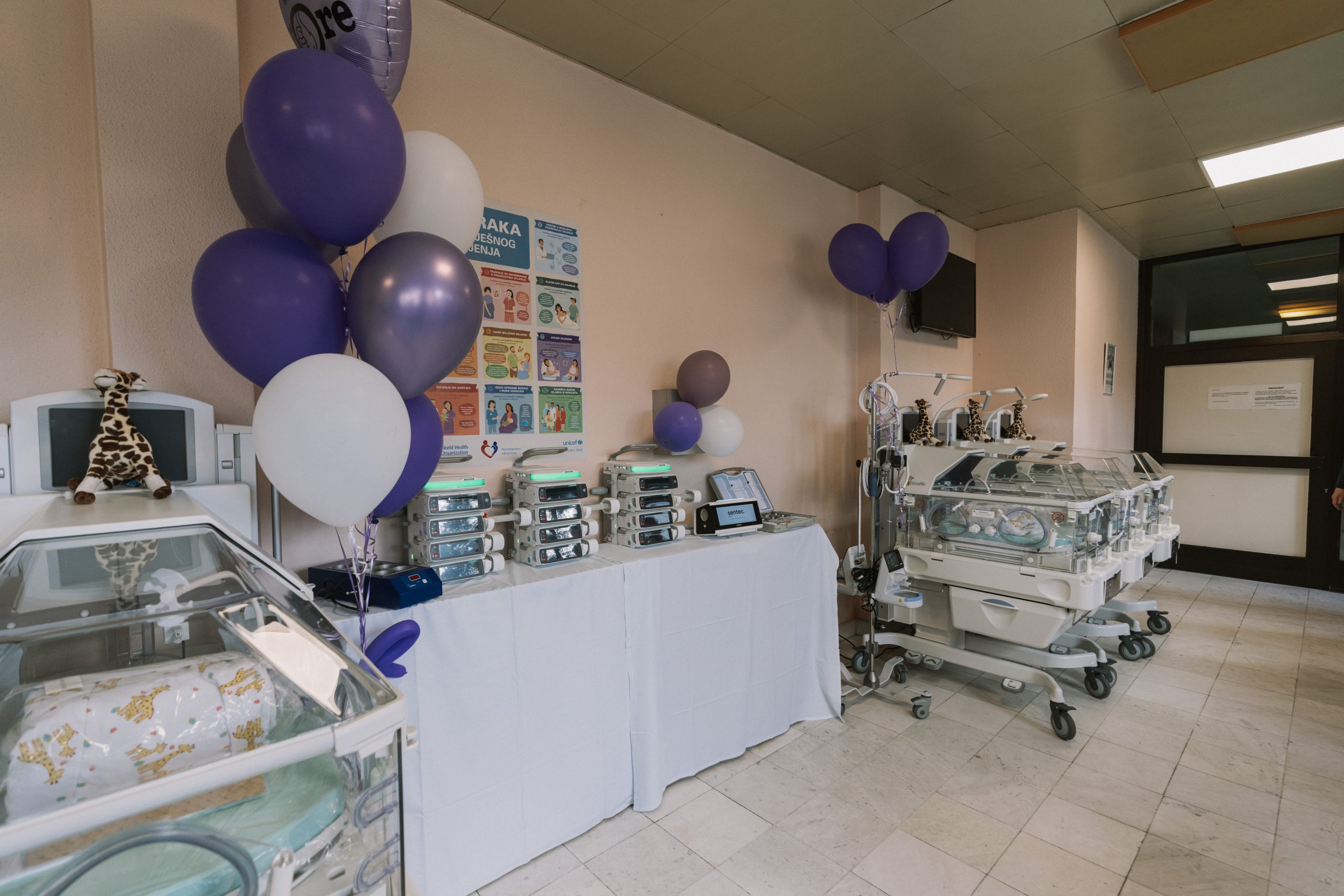 Zahvaljujući ovoj donaciji, Odjel neonatologije obogaćen je novom opremom koja uključuje: 6 inkubatora, 12 perfuzora, 6 infuzomata, uređaj za transkutano mjerenje CO₂, video laringoskop, HFNC uređaj, ovlaživač medicinskih plinova, terapijska kolica i grijač bočica.