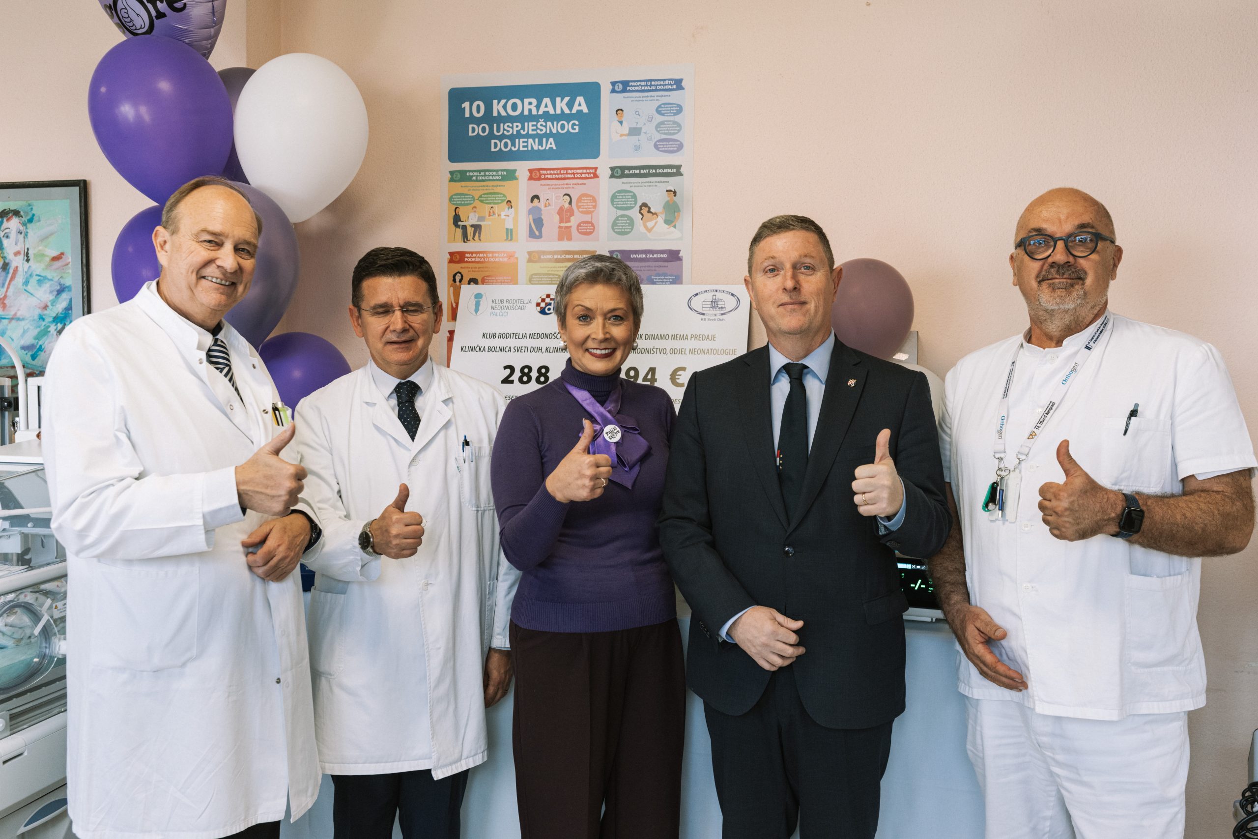 Nakon prigodne ceremonije i postavljanja donatorskih pločica na inkubatore i ostale uređaje prikupljene u akciji, cijela delegacija koju su činili Palčići, njihovi roditelji, predstavnici Dinamove zaklade i bolničko osoblje u zrak su pustili ljubičaste balone koji simboliziraju najmanje i najhrabrije borce – male Palčiće!